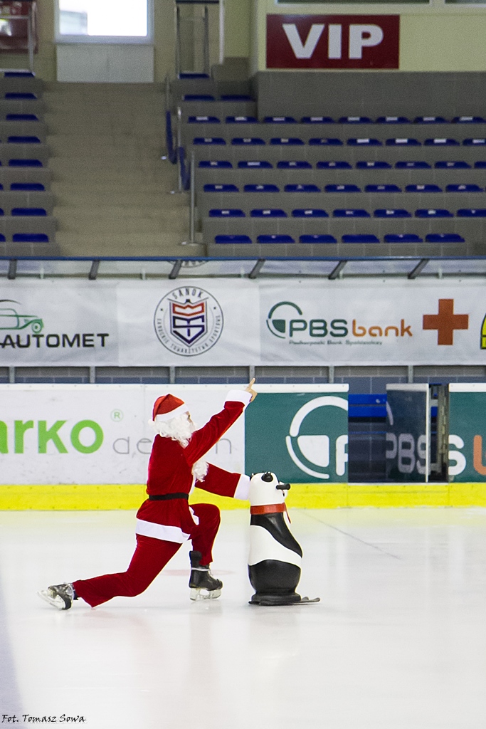 Dodano: 07-12-20156 grudnia na Arenie Sanok i Torze Lodowym odbyły się „Mikołajki na lodzie”, zorganizowane przez Urząd Miasta i Miejski Ośrodek Sportu i Rekreacji w Sanoku.Impreza przyciągnęła tłumy dzieci i młodzieży wraz z rodzicami. Uczestnicy darmowej ślizgawki mieli możliwość spotkania się ze św. Mikołajem, który zaskoczył dzieci pojawiając się na … łyżwach. Św. Mikołaj, któremu pomagali: burmistrz Tadeusz Pióro, wiceburmistrz Edward Olejko, sekretarz miasta Waldemar Och oraz dyrektor MOSiRu Tomasz Matuszewski, nie miał ani chwili wytchnienia rozdając dzieciom cukierki, paczki ze słodyczami, przyborami szkolnymi i różnymi gadżetami. Nie brakowało też chętnych do pamiątkowego zdjęcia z Mikołajem. Dla uczestników tego wydarzenia przygotowano wiele atrakcji. Odbyły się liczne zabawy i konkursy z nagrodami. Częstowano również gorącą herbatą i drożdżówkami.