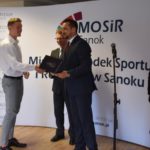 Dodano: 07-07-2020Podczas spotkania, które odbyło się 7 lipca br. w sali konferencyjnej sanockiej Areny, burmistrz Tomasz Matuszewski wraz z zastępcą Grzegorzem Korneckim, przewodniczącym Rady Miejskiej Andrzejem Romaniakiem, dyrektorem MOSiR-u Tomaszem Lasykiem i prezesem Sanockiej Fundacji Rozwoju Sportu Kamilem Frąckiem wręczyli nagrody sportowcom za wybitne osiągnięcia w 2019 r.