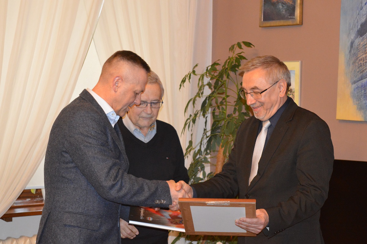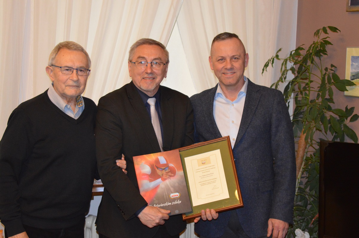 Wizyta prezesów PZŁS miała szczególny charakter. Podczas spotkania wręczono Burmistrzowi Jubileuszową Złotą Odznakę z okazji 95. rocznicy powstania związku za współpracę i zasługi dla rozwoju łyżwiarstwa szybkiego w Polsce przyznaną przez Zarząd Związku.
