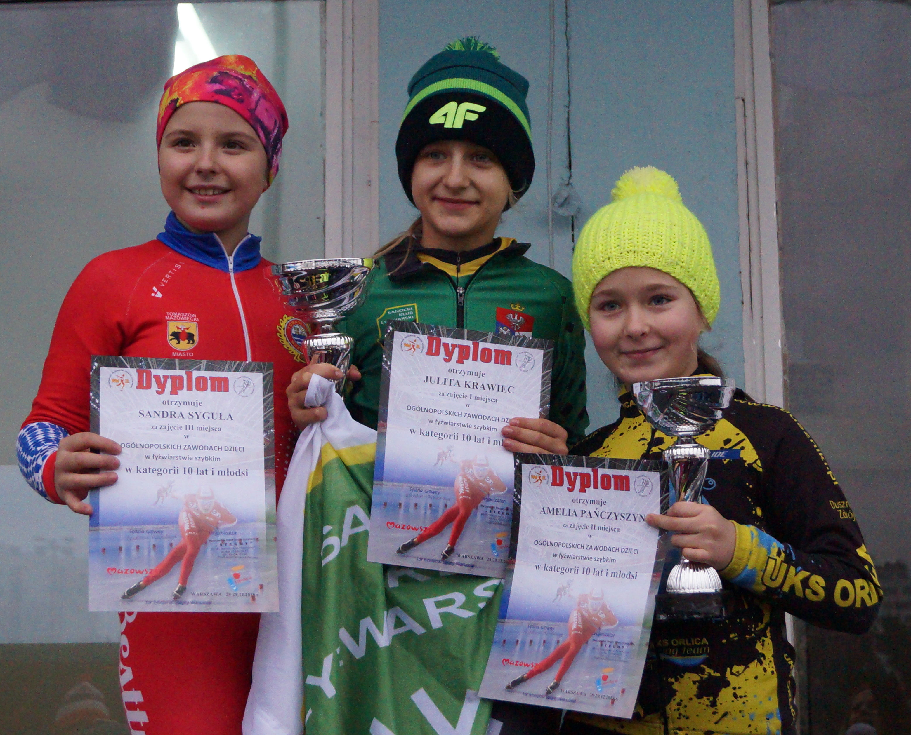 Dodano: 04-01-2019Sukcesem SKŁ „Górnik” Sanok zakończyły się Ogólnopolskie Zawody Dzieci w Warszawie. Sanocki klub podczas turnieju reprezentowało 8 zawodników. W kategorii U13 7. miejsce zajął Roch Maliczowski (trzykrotnie ósmy na 500m i siódmy na 1000m).Wśród 12-latków 1. miejsce zajął Szymon Hostyński (czterokrotnie pierwszy na podium w wyścigach na 500m). W tej kategorii czwarte miejsce zajął także reprezentant z Sanoka Patryk Kudła). Ósme miejsce przypadło Jagodzie Kopczak (7. i 9. na 300m oraz dwukrotnie 8. na 500m) w kategorii 11-latków. W tej samej kategorii 18. miejsce zajęła Maja Rysz. Pierwsze miejsce w kategorii U10 zajęła Julita Krawiec, która dwukrotnie jako pierwsza ukończyła metę pokonując 300m oraz zajęła 2. i 3. miejsce na 100m. Piąte miejsce zajęła Maja Pytlowany. Na 14 pozycji ukończyła Emilia Zając. Gratulujemy sukcesów. Poniżej fotorelacja: