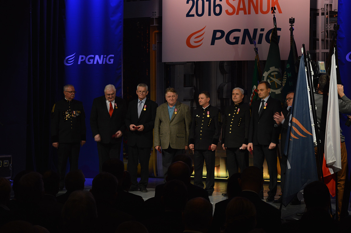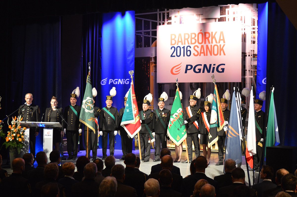 Dodano: 25-11-2016Jak co roku sanoccy górnicy uroczyście obchodzili swoje święto. Aktualnie uroczystości odbywały się nieco wcześniej, gdyż 24 listopada 2016 r., a nie w sam dzień św. Barbary – patronki górników, co wynikało z obiektywnych przyczyn organizacyjnych. Rozpoczęły się o godzinie 10.00 Mszą Świętą w kościele Przemienienia Pańskiego w Sanoku. Po nabożeństwie górnicy i zaproszeni goście, prowadzeni przez orkiestrę dętą PGNiG – Oddział w Sanoku, przemaszerowali do Sanockiego Domu Kultury. Tutaj nastąpiło wręczenie odznaczeń branżowych oraz wystąpienia organizatorów i zaproszonych gości. Miasto reprezentował podczas uroczystości Burmistrz Tadeusz Pióro. Przypomniał on bogate tradycje górnicze regionu, począwszy od średniowiecznego wydobywania soli, aż po eksploatację ropy naftowej, której światowa kariera zaczęła się właśnie na Podkarpacku, w tym Ziemi Sanockiej. Podkreślił chlubne cechy charakteru górników: pracowitość, wytrwałość, honor i patriotyzm, które oprócz ukrytych w pod ziemią kopalin są niewątpliwym bogactwem sanocczyzny.