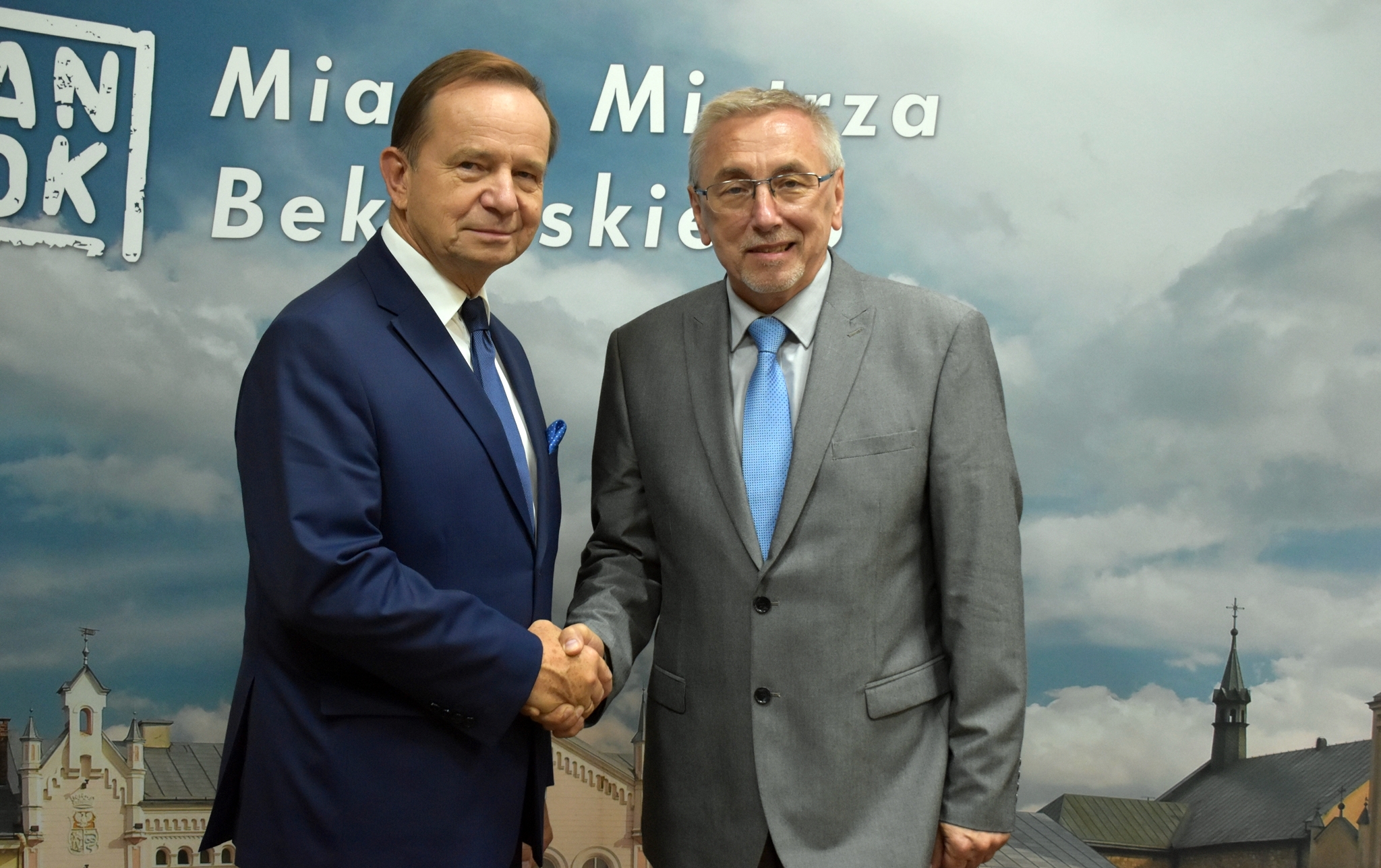 Dodano: 14-09-2018Marszałek Województwa Podkarpackiego Władysław Ortyl odwiedził wczoraj Sanok i spotkał się z burmistrzem Tadeuszem Pióro. Tematem spotkania były prowadzone inwestycje, które realizowane są przez miasto przy wsparciu urzędu marszałkowskiego. Mówiono o Centrum Rehabilitacji i Sportu, które wkrótce zostanie otwarte, trwającej budowie dworca multimodalnego, stadionie „Wierchy”. Dużo czasu poświęcono rozmowie nt. budowy łącznika do obwodnicy Sanoka – inwestycji wartej blisko 22 mln zł. Jego budowa ruszy już w przyszłym roku.